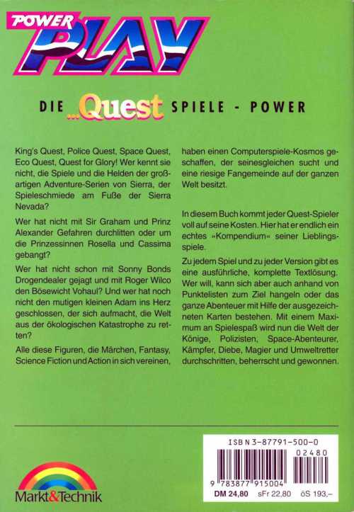 Die ... Quest-Spiele-Power : King's Quest I - VI, Police Quest I - III, Space Quest I - V, ECO Quest I - II, Quest for Glory I - III / Christian Rogge. -1. Aufl. - Haar bei München :