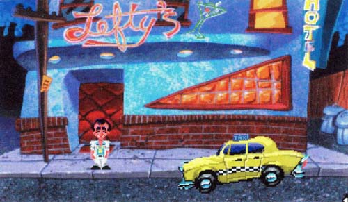Zurück im Schankraum, ist hier immer noch nichts los. Es ist wohl an der Zeit, nach Downtown zu fahren. Larry verläßt die Kneipe. Wie in vielen amerikanischen Großstädten, ist auch an dem Telegraphenmast neben Lefty's Bar ein Taxischild angebracht. Statt zu laufen, ruft sich Larry ein Taxi. Schließlich ist der Fußweg durch dunkle Gassen ziemlich gefährlich.