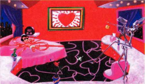 Larry hastet ihr hinterher in den Hoteltrakt des Casinos, den er mit dem Aufzug erreicht. Im vierten Stock verbirgt sich hinter der Tür mit dem Herzen das gesuchte Zimmer. Fawn, Larry kommt! Ein Zimmer, wie für eine Hochzeitsnacht erschaffen: Bett in Herzform, nach dem Einschalten leise Musik aus dem Radio und ein frisch getrautes Paar. Um richtig in Stimmung zu kommen, möchte Fawn noch ein Gläschen Wein trinken. Zum Glück hat sich Larry die Telefonnummer des Ajax Liquor Store aus der Radiowerbung gemerkt und könnte dort auch sofort anrufen, wenn da nicht ein kleines Problem wäre: Auf dem Zimmer ist kein Telefon. Wer möchte denn auch schon in seiner Hochzeitsnacht vom Gebimmel eines Anrufers gestört werden? Larry muß daher nach unten laufen und etwas zu trinken besorgen.