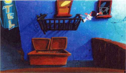 Vor den verschiedenen Schauplätzen des Spiels ist jeweils im linken Bereich des Bildschirms ein kleines gelbes Schild befestigt. Klicken Sie das Schild mit der »Benutzen-Hand« an, erscheint ein Taxi auf dem Spielfeld, in das Sie dann nur noch einsteigen, es also benutzen müssen. Erst einmal unterwegs, müssen Sie nur noch den Fahrer ansprechen und ihm Ihr gewünschtes Ziel mitteilen.