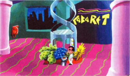 Beim Durchstromern des Casino-Hotels gelangt Larry hinten rechts zum Aufzug. Als sein Blick den Abfalleimer streift, sieht er eine Mitgliedskarte zur Disco zwischen dem Abfall liegen. Um später vielleicht noch einmal dort vorbeischauen zu können, nimmt er die Eintrittskarte an sich. Durch den Gang rechts kommt Larry zum Kabarett und kann sich eine Tanzshow anschauen. Einer der Tische ist sogar nicht reserviert, und er kann sich für eine Weile zur Erholung hinsetzen.