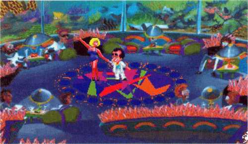 Larry fährt zur Disco und kann mit Hilfe der im Casino aufgefundenen Clubkarte an dem Rausschmeißer vorbei, hinein in die Partyzone. In dem von einem riesigen Aquarium umgebenen Raum setzt sich der kleine Mann in einen freien Sessel neben