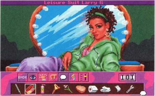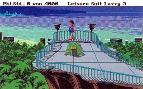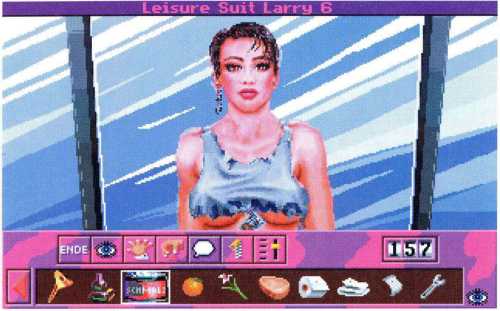Zwar gefallen ihm die tanzenden Hupfdolls ganz gut, aber auf die Dauer wird so etwas ja auch langweilig. Larry geht also zurück zur Spielhalle und hat die Qual der Wahl: Soll er nun Blackjack, auch bekannt unter dem Namen 17 und 4, oder aber an einem Einarmigen Banditen spielen? Wie er sich entscheidet, ist eigentlich egal. Er sollte allerdings immer wieder zwischendurch sein Vermögen sichern, also Spielstand speichern nicht vergessen, und bei Versicherungsangeboten diese annehmen. Da der Adventureheld sowieso nicht wesentlich mehr als 250 Dollar gewinnen kann, das ist nämlich die Gewinnobergrenze dieses Casinos, beendet er seine Spiele-Glückssträhne und versucht sich in der Liebe. Wie heißt es noch so schön: Glück im Spiel, Geld für die Liebe.