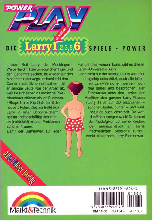 Beim Durchblättern dieses Buches werden Sie feststellen, daß der Schwerpunkt dieser Aufreißhilfe ohne Zweifel bei Larry eins und sechs liegt. Grund dafür ist, daß Sie die Versionen zwei und drei zwar noch mit sehr viel Glück in einem verstaubten Karton "bei Ihrem Händler finden könnten, daß diese aber zur Zeit eigentlich nicht mehr verkauft werden. Bei der Fünf er-Version sieht es ähnlich aus: die Restbestände werden derzeit zwar noch verkauft, sie wurde aber von der sechsten Ausgabe der »Abenteuer-Saga« abgelöst. Die Ur-Version des Klassikers wurde grafisch auf die XL-Version überarbeitet und ist seitdem wieder zu haben.